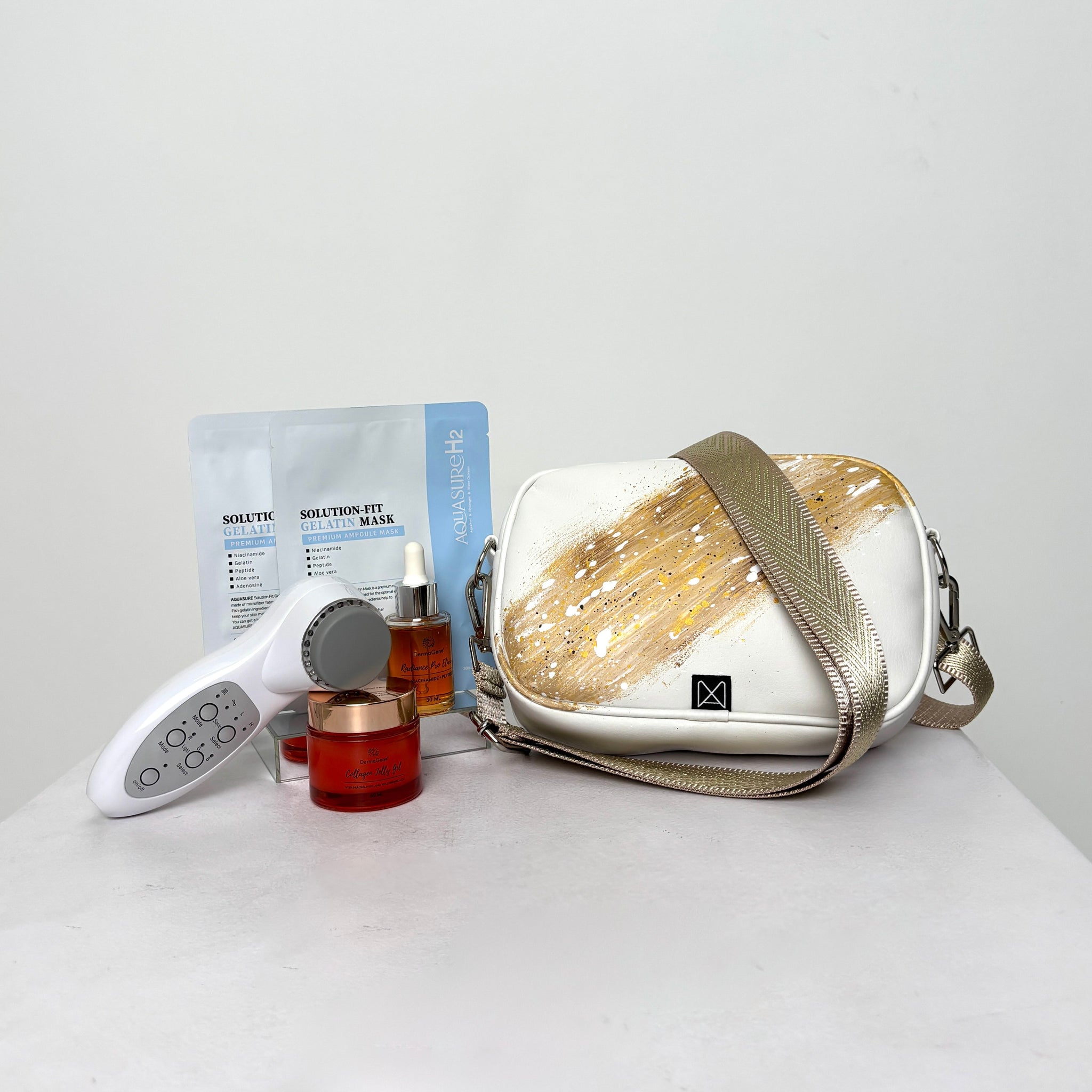 A csomagban található termékeket úgy terveztük, hogy minden korosztály könnyedén be tudja illeszteni az arcápolási rutinjába és a gardróbjába egyaránt. A készülékek gyorsak, megbízhatóak és otthoni használatra optimalizáltak, míg a táskák prémium anyagokból, egyedileg, kézzel készülnek, tükrözve a magyar tervezés kreativitását és eleganciáját. Így minden csomag praktikus, stílusos és tudatos választás, amely egyszerre kényezteti a szépségre vágyó nőt, és emeli a mindennapok stílusát.